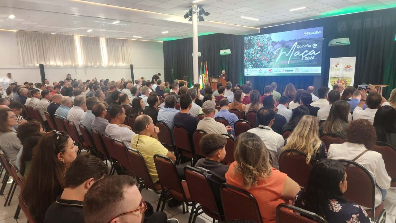 Era calor, não frio. O sol forte da manhã de 30 de janeiro banhava os jardins do Hotel Renar, em Fraiburgo, quando o que se anunciava nos discursos era, ironicamente, o frescor de novos tempos. Ali, no coração do meio-oeste catarinense, a Abertura Oficial da Colheita da Maçã reuniu autoridades federais e estaduais, produtores, lideranças do setor e jornalistas de três estados para celebrar não apenas números — expressivos — mas a resiliência de uma cadeia que, após dois anos de adversidades climáticas, devolve ao mercado uma safra de qualidade excepcional.
